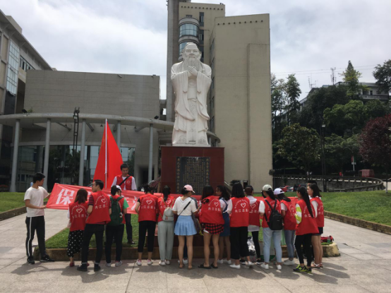 活動首先在師范學院天一廣場舉行了志愿者簽名活動,隨后,大家提上塑料袋沿師院外親水步道往清溪濕地公園方向,清掃沱江河畔白色垃圾。雖烈日當頭,汗流浹背,卻未能阻擋我們前進的步伐,懷揣著對母親河的熱愛,我們志愿從小事做起,從自身做起,弘揚五四精神,爭做優秀青年。