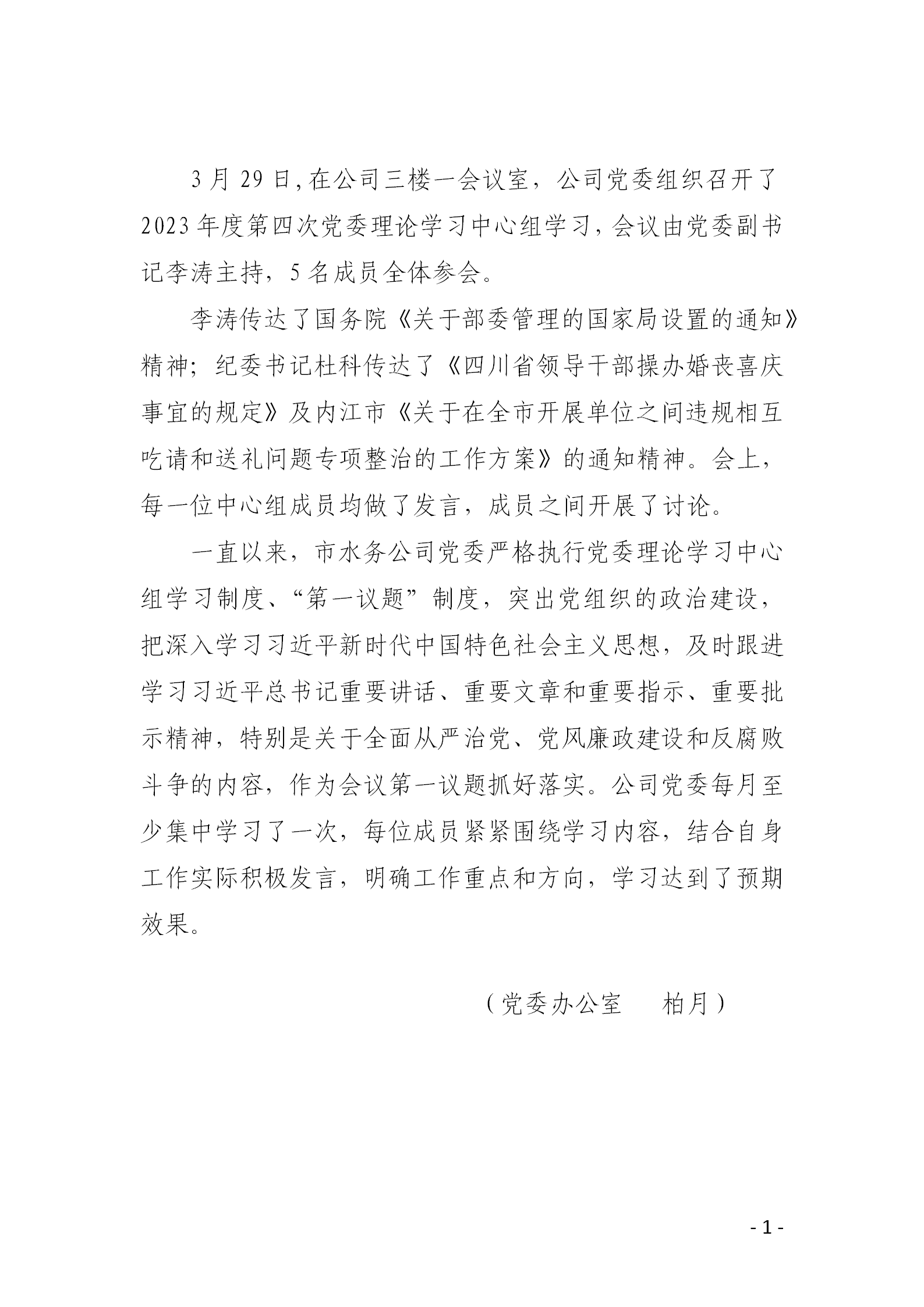 公司黨委嚴(yán)格執(zhí)行黨委理論學(xué)習(xí)中心組學(xué)習(xí)制度、“第一議題”制度