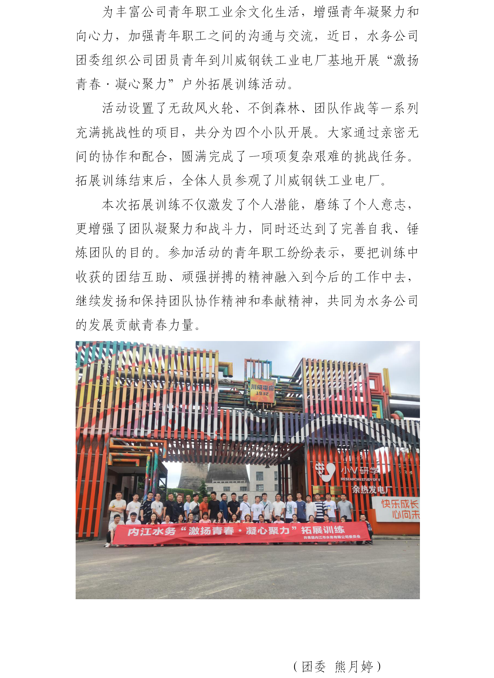 水務(wù)公司團(tuán)委開展“激揚(yáng)青春·凝心聚力”戶外拓展訓(xùn)練活動