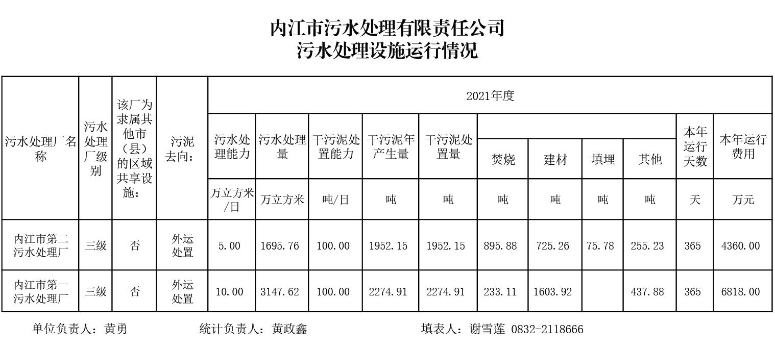 內(nèi)江市污水處理有限責任公司污水處理設(shè)施運行情況
