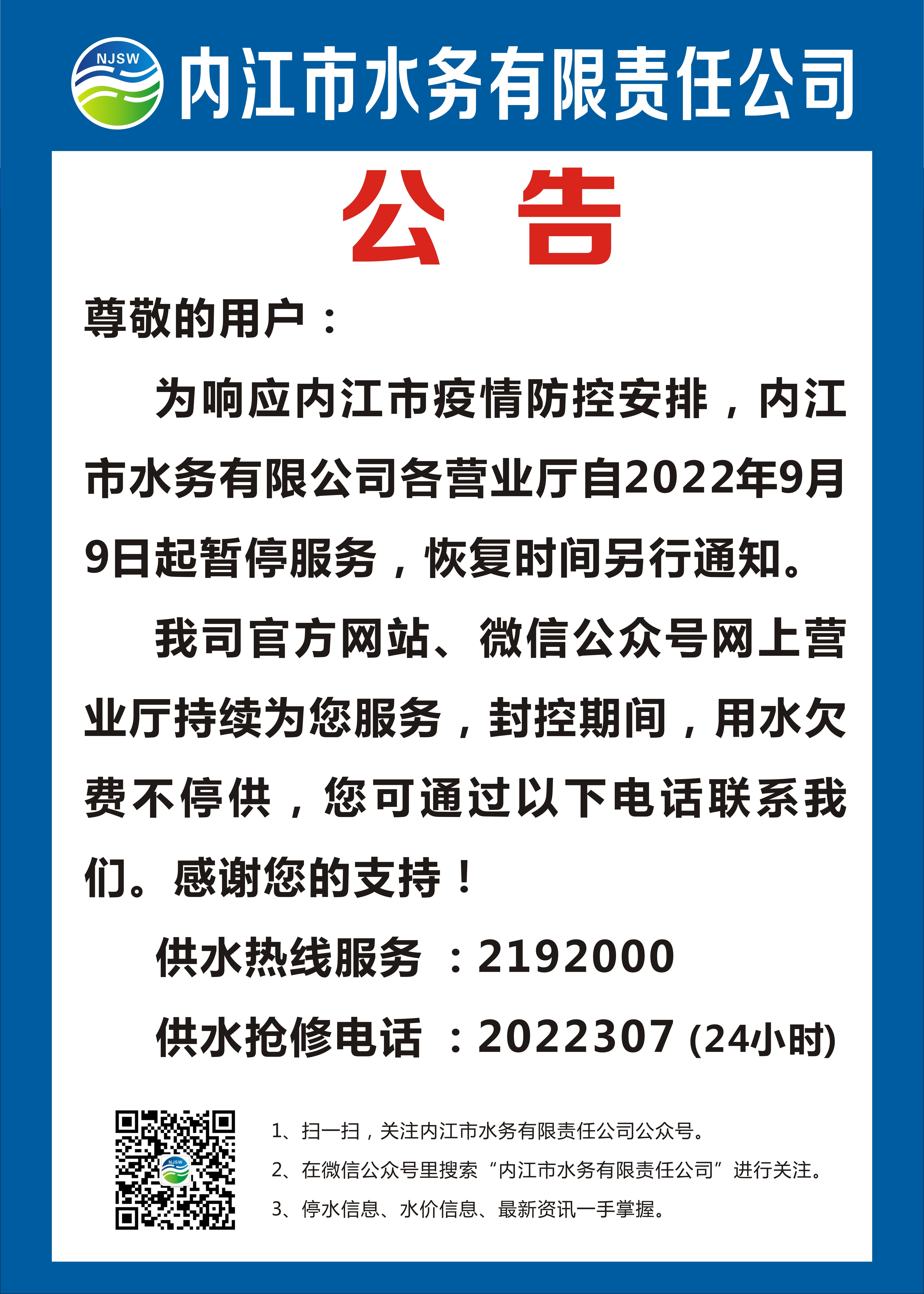 內(nèi)江市水務(wù)有限責(zé)任公司疫情防控公告