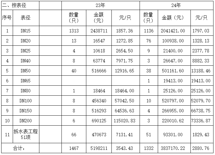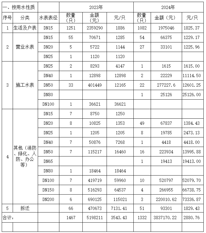 內(nèi)江市水務(wù)有限責(zé)任公司2023-2024供水安裝平均價(jià)格公示
