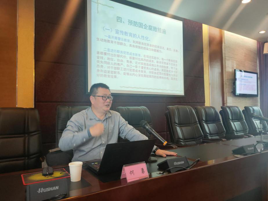 講座上,何勇以“國(guó)有企業(yè)預(yù)防腐敗實(shí)踐探索”為題,從建國(guó)以來(lái)反腐敗歷史的簡(jiǎn)要回顧、當(dāng)前國(guó)企領(lǐng)域反腐敗的形勢(shì)、水務(wù)企業(yè)違紀(jì)違法典型案例、預(yù)防國(guó)企腐敗措施四個(gè)方面,剖析腐敗根源,深入淺出地將國(guó)有企業(yè)預(yù)腐防變工作做了詳細(xì)的梳理和講解,具有很強(qiáng)的教育性和警示性。公司黨委副書記、總經(jīng)理李濤結(jié)合講座內(nèi)容,對(duì)進(jìn)一步抓好黨風(fēng)廉政工作提了四點(diǎn)要求:一是要強(qiáng)化政治定力;二是要抓實(shí)紀(jì)法學(xué)習(xí);三是要堅(jiān)持嚴(yán)于律己;四是要自覺(jué)接受監(jiān)督。李濤強(qiáng)調(diào),講座的目的在于進(jìn)一步提高干部職工對(duì)黨風(fēng)廉政建設(shè)重要性的認(rèn)識(shí),切實(shí)加強(qiáng)廉潔自律教育,將黨風(fēng)廉政建設(shè)不斷引向深入。
