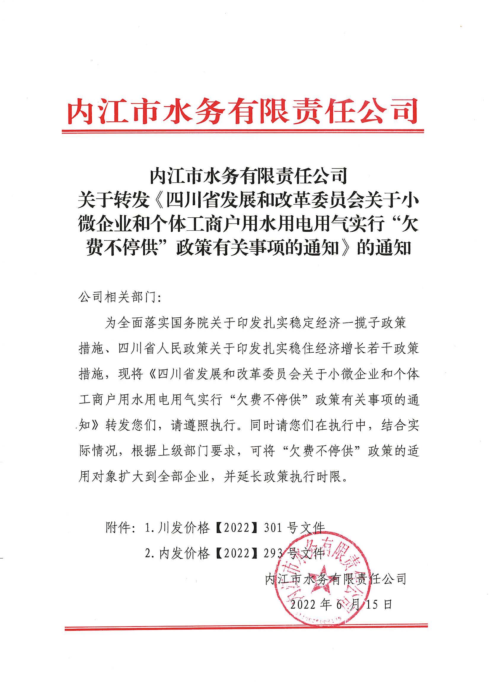 關于小微企業和個體工商戶用水用電用氣實行"欠費不停供”政策有關事項的通知