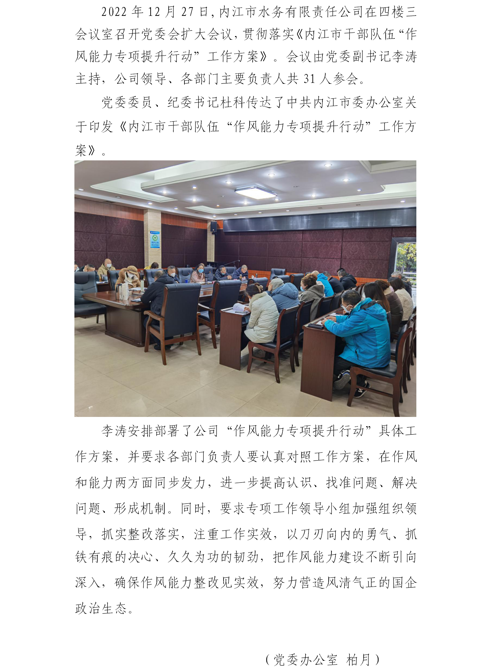 市水務公司召開“作風能力專項提升行動” 專題會議