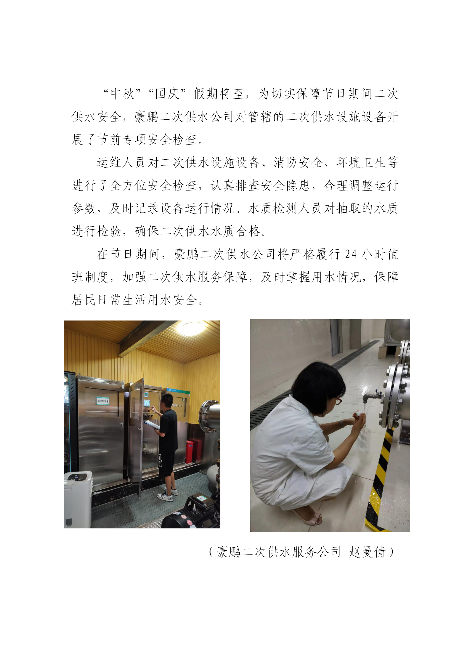 開展節前安全檢查 筑牢二次供水安全