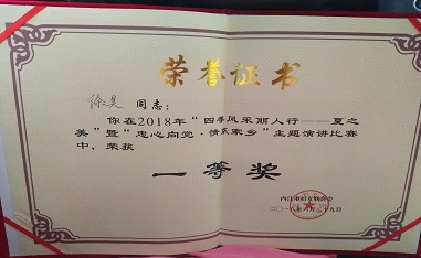 在內江婦聯組織的2018年“四季風采麗人行—夏之美”暨“忠心向黨.清溪家鄉”主題演講比賽中,我司推薦的選手徐昊代表國資委參賽,獲得一等獎。
